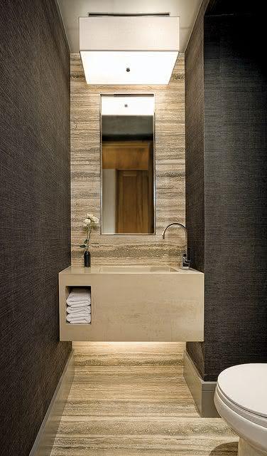 Isso acontece porque o beage é uma cor neutra e que combina com mais facilidade com outras cores. Por isso você pode inserir ele no ambiente sem medo e criar uma área incrível no seu lavabo.