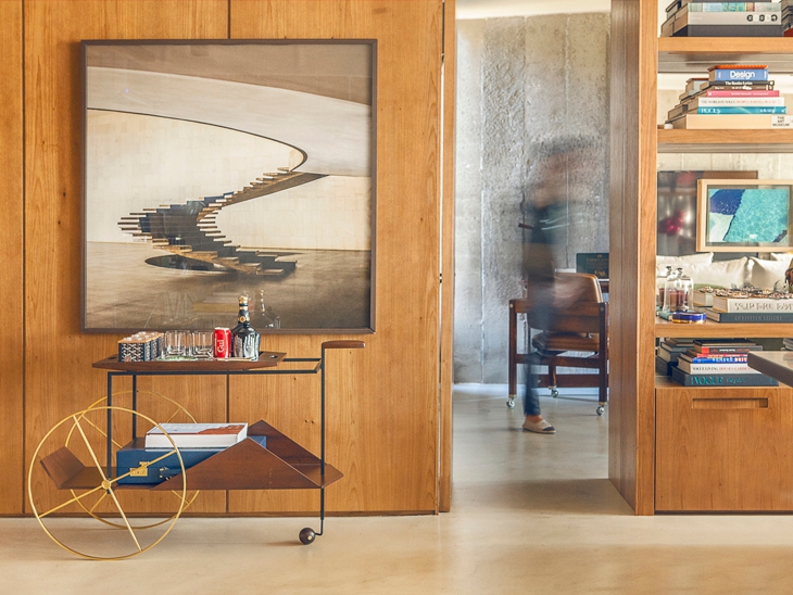 4 – Já o carrinho bar dessa sala complementa muito bem a decoração ao redor