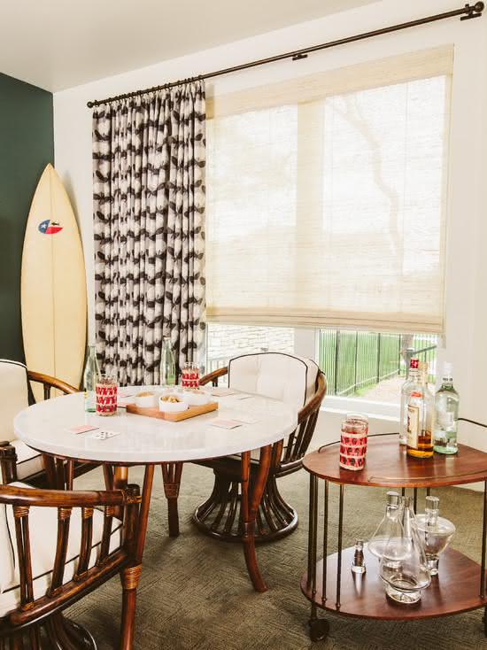 O carrinho bar pode ter um design diferente para quebrar a linearidade de ambientes minimalistas e contemporâneos. Então, invista em modelos rústicos, que remetam ao campo, ou então modelos coloridos com uma pegada mais ousada. Assim, é possível contrastar com o ambiente e ousar na medida certa.
