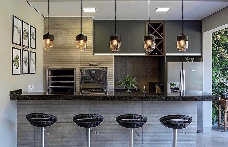 A churrasqueira externa com balcão pode vir em várias versões e estilos, como os já citados acima, inclusive, com as posições do balcão alternadas, no canto, ao redor ou até como ilha, em frete à churrasqueira.