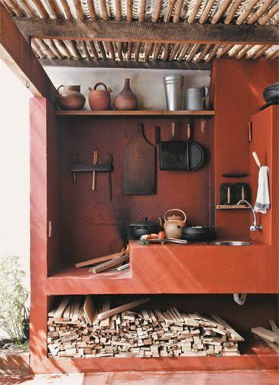 5 – Esse fogãozinho abaixo é outro que pode ficar perfeitamente bem em uma área interna, porém é importante tomar cuidado com o local em que for guardar a lenha!