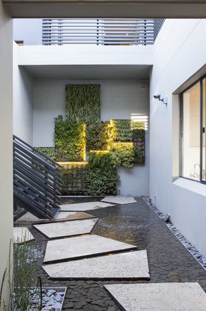 Uma outra forma de valorizar o seu muro, é colocar luzes voltadas para ele. Assim, ele fica em evidência mostrando sua elegância e todos os detalhes.