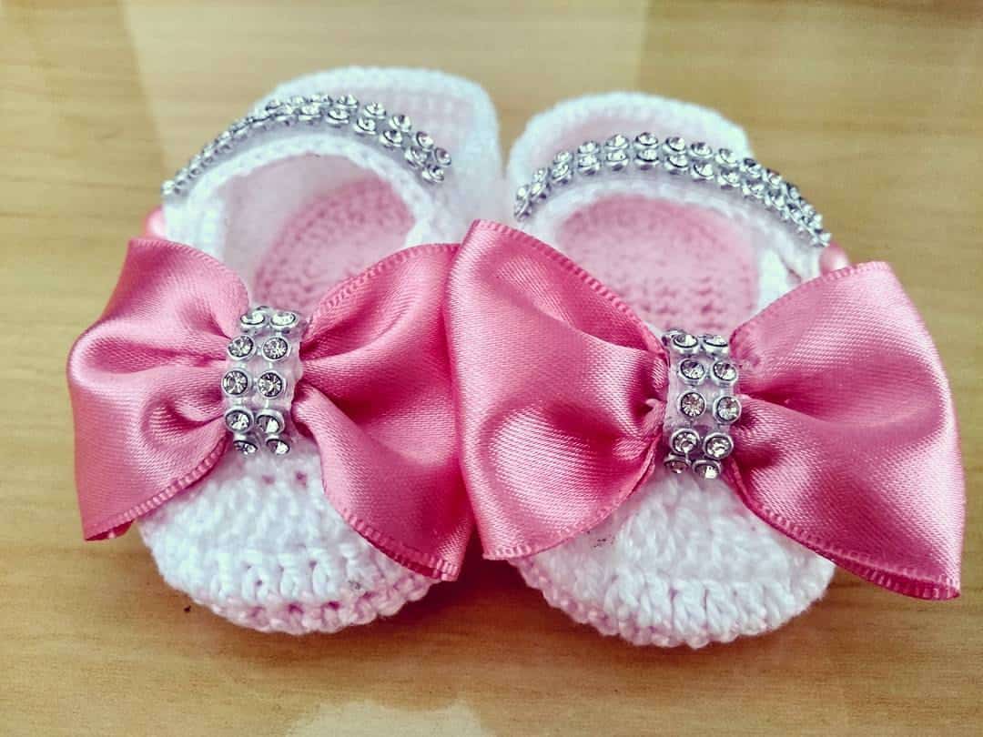 Nada como colocar pérolas no sapatinho de crochê para enfeitar e deixá-los ainda mais delicados. Saiba também que é uma das opções mais procuradas na internet na hora de presentear as meninas. Veja alguns exemplos para se inspirar: