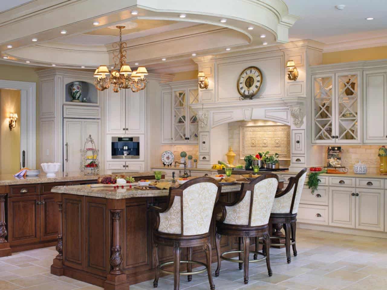 Outro destaque para as cozinhas clássicas é a utilização de lindos lustres e luminárias. Eles combinam super bem com a decoração clássica e proporcionam um toque luxuoso para as cozinhas.