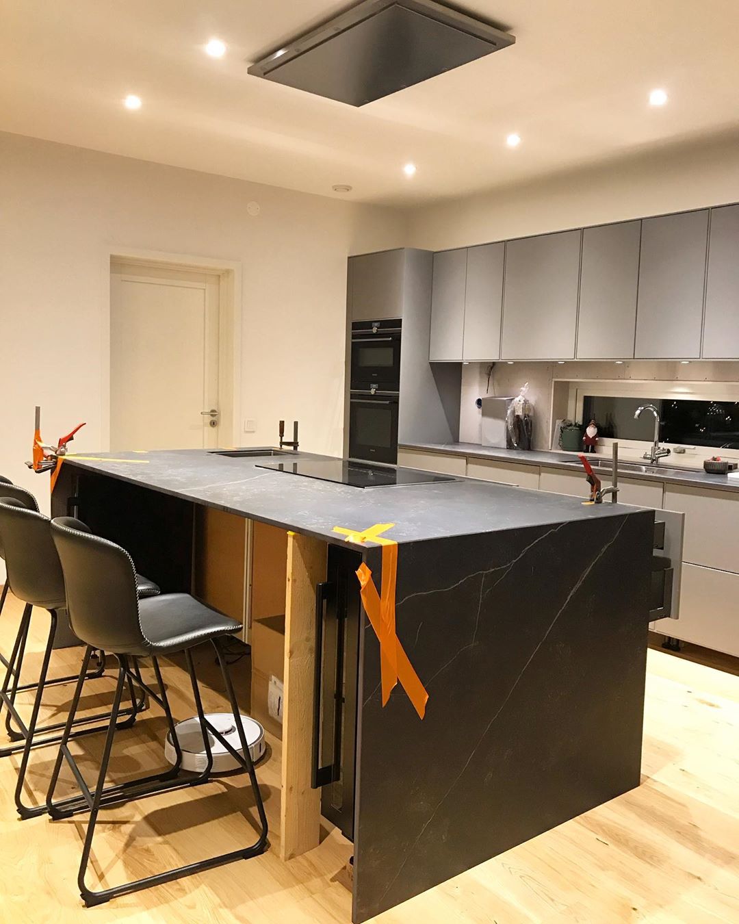 21- É possível mesclar tons de Dekton usando uma cor nos armários e outro no piso