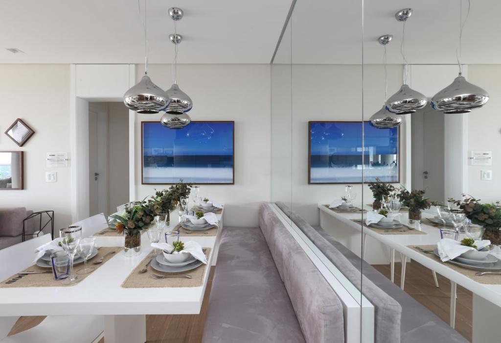 Talvez você nunca tenha pensado em utilizar espelhos na sala. Seja no cômodo de TV ou para o jantar, uma peça de vidro é uma opção cheia de potencial, pois consegue ampliar o espaço. Além disso, a duplicidade criada pelo reflexo gera sensação de conforto e reconhecimento no cômodo.
