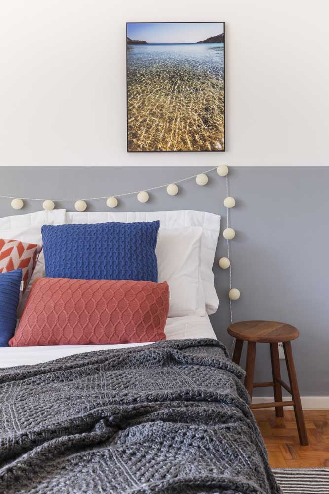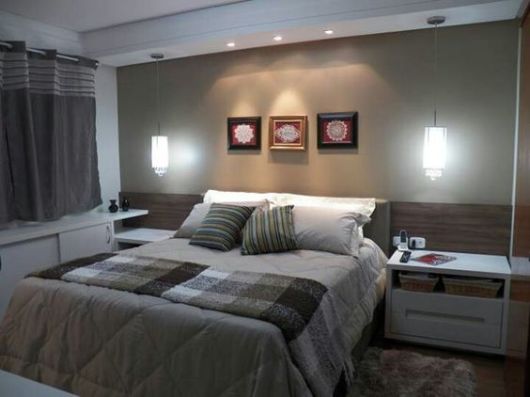 Pode aparecer atrás da cama, ao lado, na frente. Tudo vai depender do seu gosto pessoal. Se você preferir, invista em um papel de parede ao invés de pintar a parede.