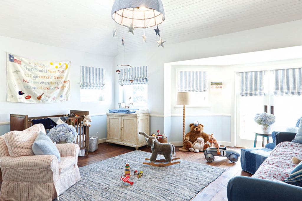 Uma excelente sugestão para fazer na sua casa é pintar uma parede de azul e as outras de branco. Depois você coloca alguns detalhes azuis no quarto. Como a roupa de cama do berço, brinquedos, tapete e almofada. Para que assim todos os itens do quarto conversem entre si.